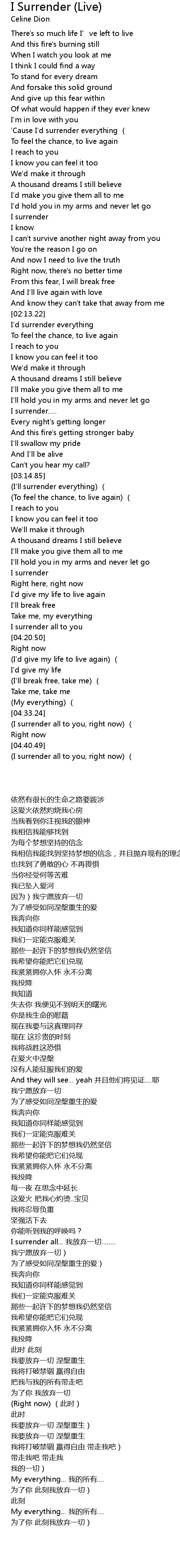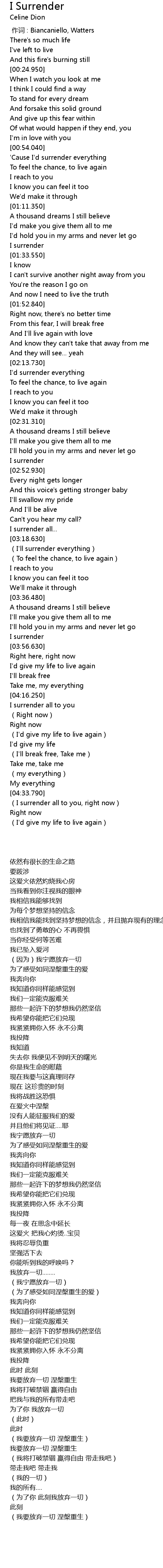 Celine Dion - I Surrender - with lyrics, Celine Dion- I surrender -w/lyrics Thank you for viewing my video!! NO COPYRIGHT INFRINGEMENT INTENDED!!! I purchased . We Have got 6 pics about I Surrender Lyrics Celine Dion images, photos, pictures, backgrounds, and more. In such page, we additionally have number of images out there. Such as png, jpg, animated gifs, pic art, symbol, blackandwhite, pic, etc. "Celine Dion - I surrender (lyrics)", This song is not my property, im simply making this video just for you to listen to it. The beautiful song, I surrender from Celine Dion . "Celine Dion I Surrender with lyrics", http://www.facebook.com/profile.php?id=100001465232438&ref=ffa...